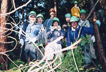 大阪近辺の山々、森の中に入って行って、下草刈りやツル切り、枝打ちや除伐などをおこない、樹木の手入れをして、草花を育て、昆虫や動物、小鳥などの生き物を大切にします。(山登りや植物観察、クラフトの部会もあります)