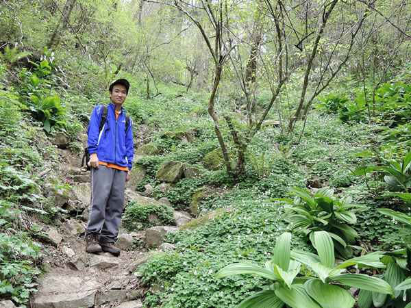 ニリンソウの花畑の中を歩く俊邦 2015.4.29