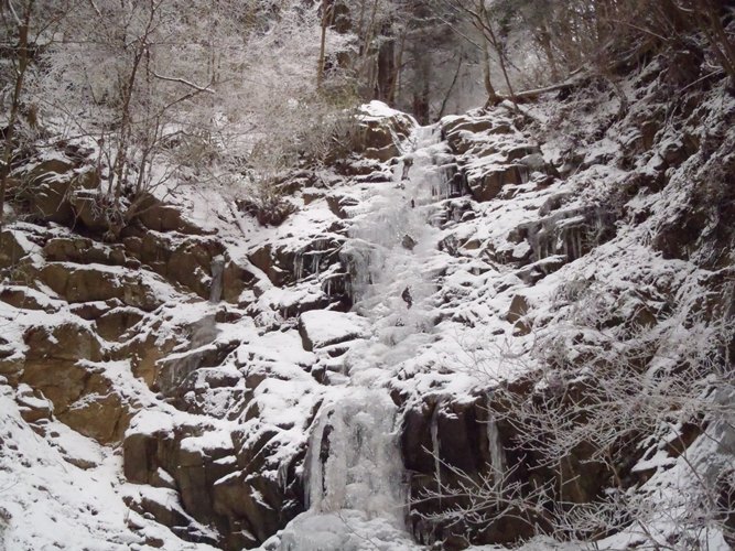 どこから登っても美しいですが、とっておきの場所はやはり「ツツジオ谷」の二ノ滝で見られる氷瀑です。マイナス5℃くらいにもなると、滝全体が凍結し「氷の芸術」が出現いたします。途中滑りやすい場所もありますので、アイゼンをつけて気をつけながら踏み跡をたどって行きましょう。(ちょっと、上級者向けのコースです)