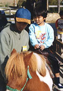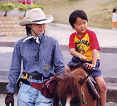 I LOVE PONY ! ポニー大好き!はじめて一人でポニーに乗りました。「さぁ、しっかり鞍につかまって〜。」お兄さんの説明をよそに、俊くんはフサフサの馬のたてがみが気になっています。ポッコ、ポッコ、ポッコ、動き始めると終始ごきげんでした。 乗馬は馬と人との、コミュニケーションです。 |