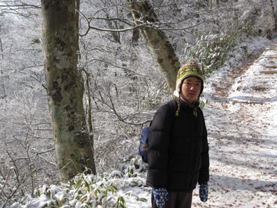 ブナの木のそばを歩く俊君。 金剛山のブナ林はいつまでも残してゆきたいものです。 今回は、オーソドックスな登山道「千早本道」を行きましたが、金剛山にはいくつもの登山道が通じていて、滝あり、天然林あり、お花畑ありです。 いつか、金剛山のエキスパートになりたいものです。 |