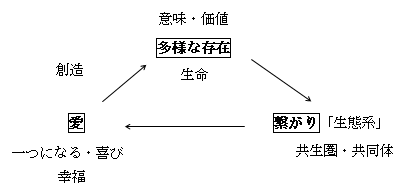 「愛」がなければ一つになって喜びに至るという共生圏(天国)は生じない。
